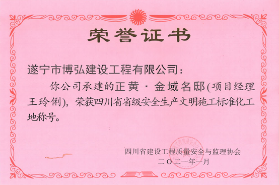 博弘建工承建項(xiàng)目榮獲“四川省省級(jí)安全生產(chǎn)文明施工標(biāo)準(zhǔn)化工地”稱號(hào)